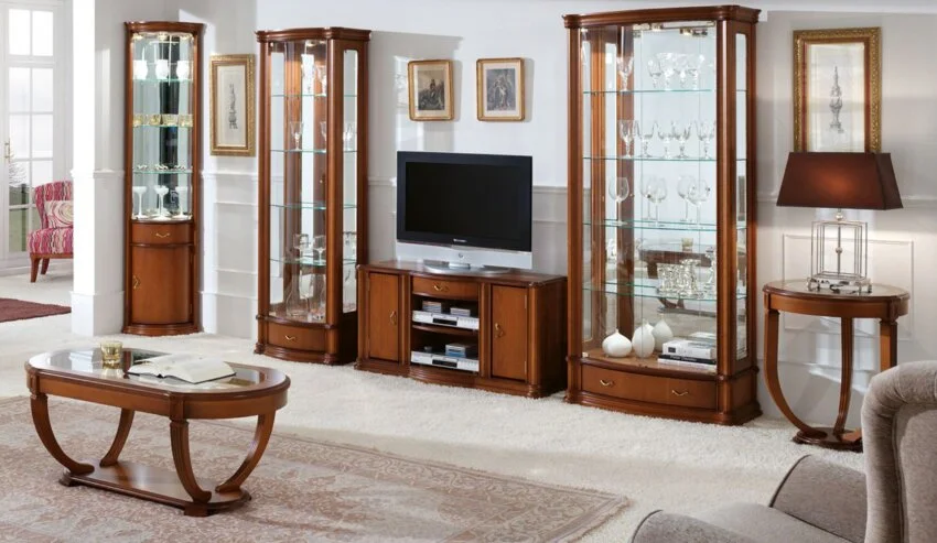 Vitrine mit LED Licht italienisches Design | Kirsche oder Nussbaum